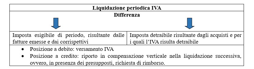 I contribuenti IVA, dalla differenza dell’imposta relativa alle operazioni attive e quella riferita alle operazioni passive, determinano mensilmente o trimestralmente il debito o il credito IVA, effettuando la liquidazione periodica. Il saldo IVA relativo al periodo d’imposta è, invece, determinato attraverso la liquidazione annuale. Liquidazione periodica dell'IVA I soggetti passivi IVA sono tenuti a liquidare periodicamente l'imposta e definire la posizione di credito o debito nei confronti dell'Erario (art. 1 DPR 100/98). La liquidazione si concretizza effettuando la differenza tra l'ammontare dell'IVA esigibile e l'IVA detraibile del periodo di riferimento. Le liquidazioni dell'IVA possono avere periodicità mensile o trimestrale. La liquidazione trimestrale può essere applicata: