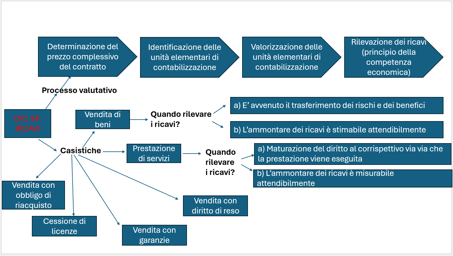Il flowchart descrive il processo di applicazione dell'OIC 34 per la rilevazione dei ricavi.